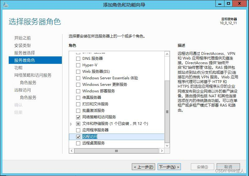②下一步→下一步→勾选网络策略和访问服务以及远程访问