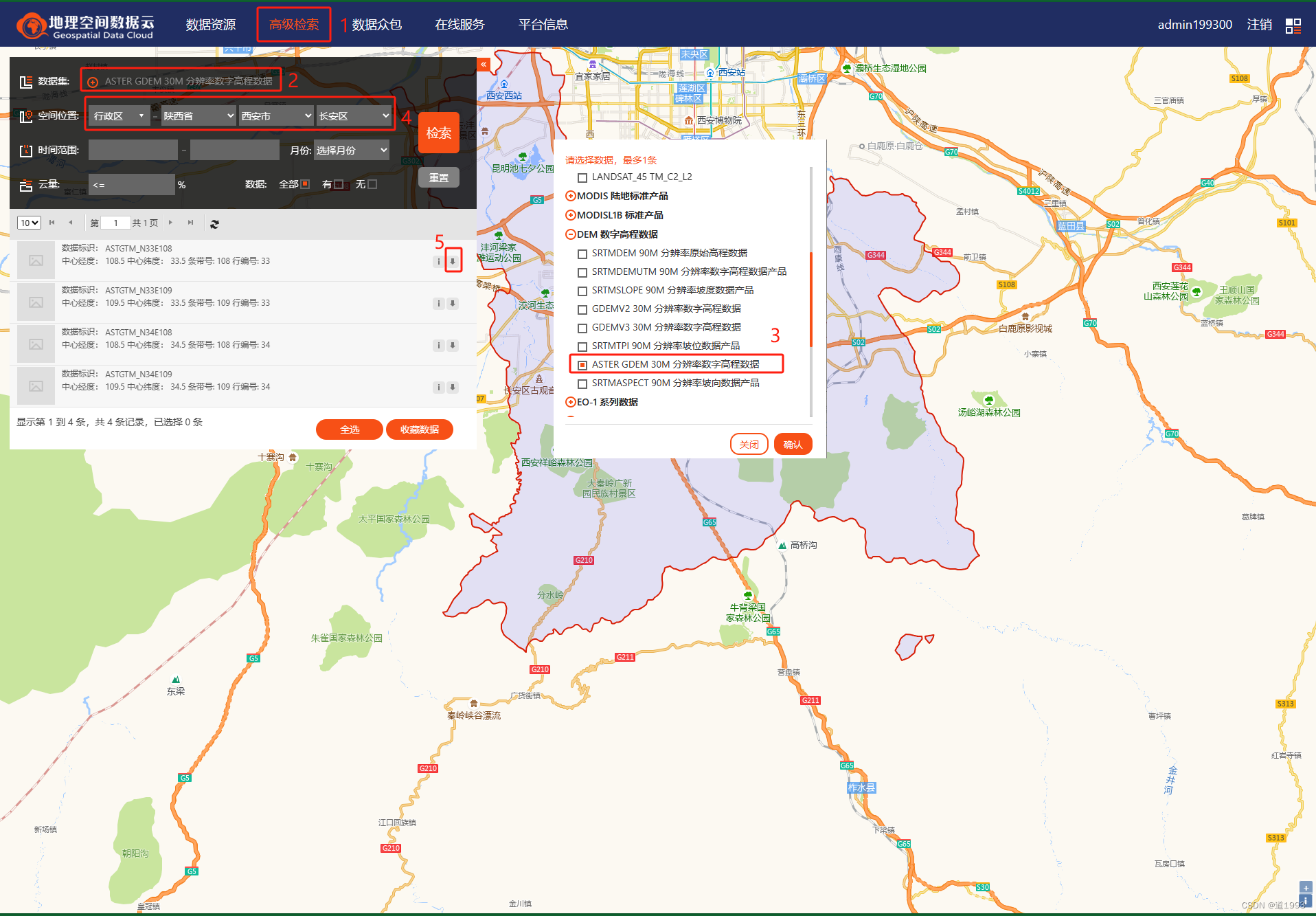 下载地址:地理空间数据云 (gscloud.cn)
