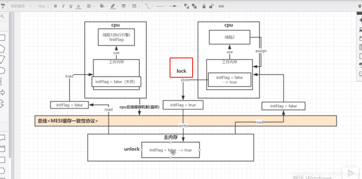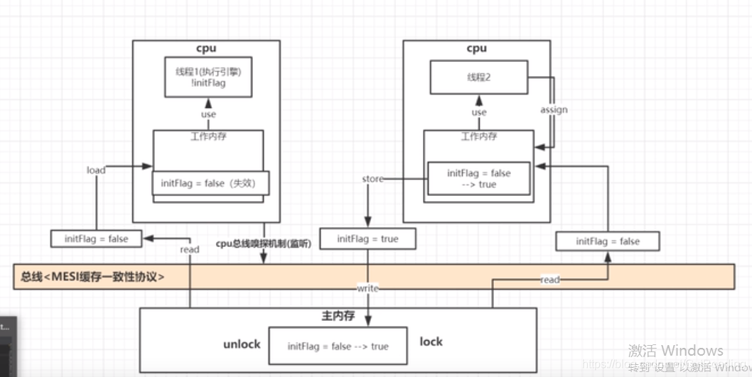 以前是总线加锁:共享变量加lock,线程执行完unlock