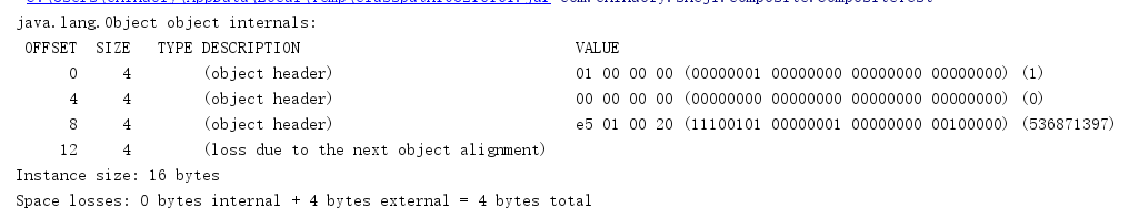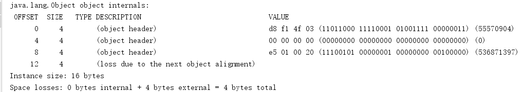 System.out.println(ClassLayout.parseInstance(obj).toPrintable());