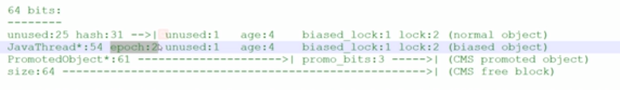 对象头由两部分组成:Mark Word(64bit),Klass Pointer/Class Metadata Address(32bit,默认JVM启动指针压缩,因此头部只占用了96bit,若非指针压缩此内容占64bit)。存储:类型,GC状态,同步状态(偏向锁/轻量锁/重量锁)和哈希码