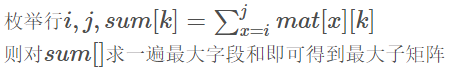 上面的k就是第k列,sum[k]就等于第k列中第i行和第j行之间的所有数的和,然后就能利用最大连续和求得当前矩阵的和了。