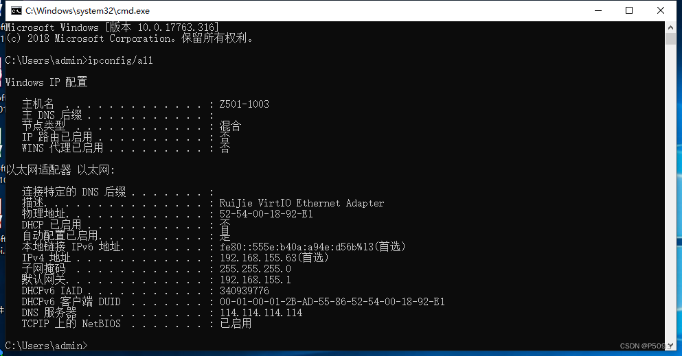 其中的物理地址就是我们本机的MAC(MK)地址。