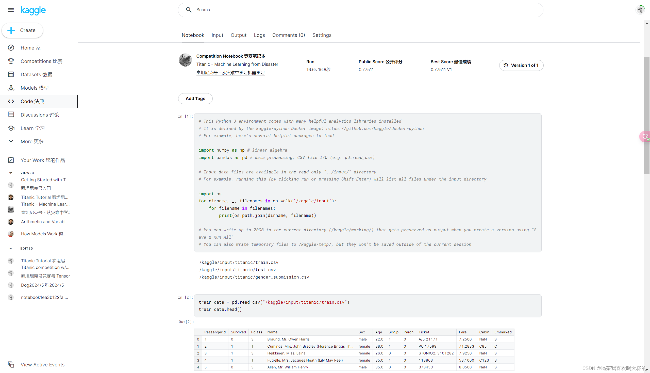 Titanic Tutorial | Kaggle-泰坦尼克号教程