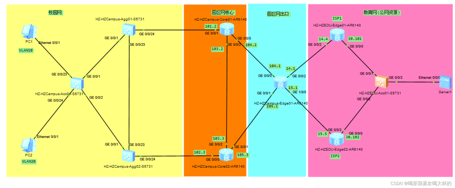 [HZ-HZCampus-Edge01-AR6140-GigabitEthernet1/0/0]ip ad 10.1.15.1 24