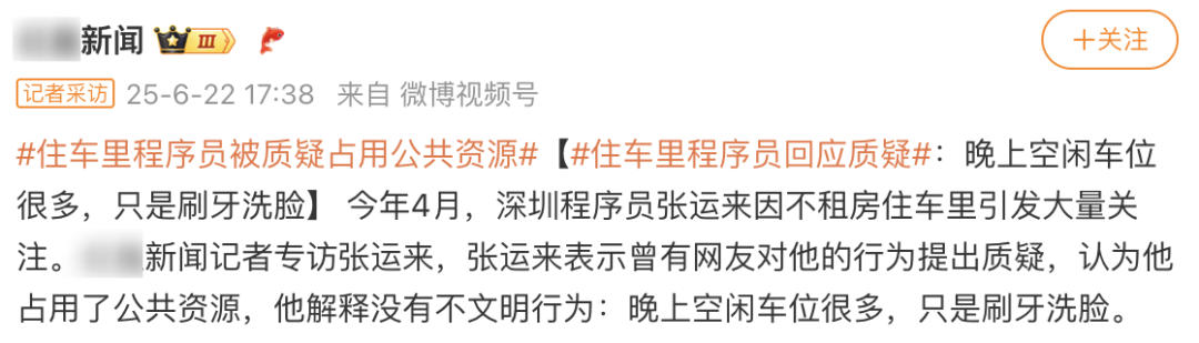 前段时间,4 月份的时候,小程程发过一位在深圳上班的程序员(张哥),他连续 4 年工作日住在车里周末再回老家,文章请戳链接。