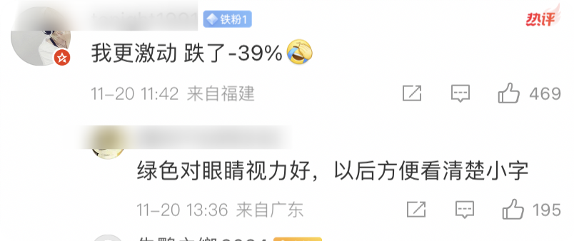 还有网友说小米股票绿惨了的。“绿色对眼睛视力好,方便看清楚小字”