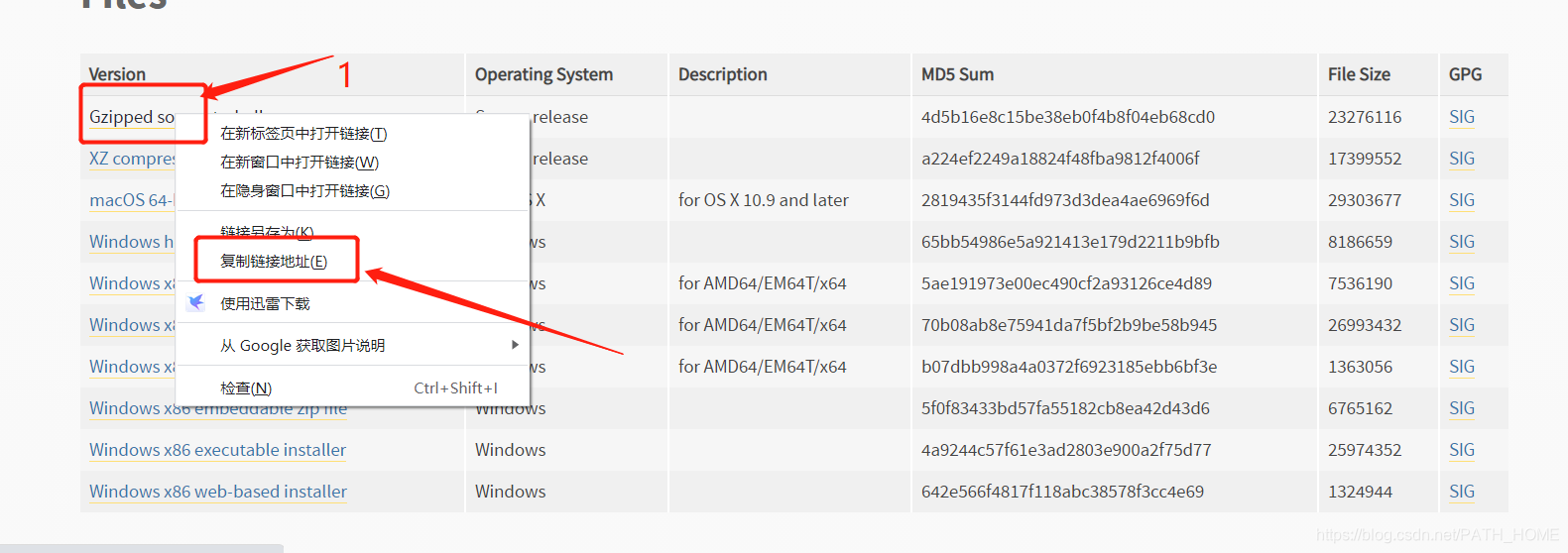 第二种方式:同样找到该文件,右键复制(tgz文件的链接地址,也就是下载地址 通过linux直接去下载)废话不多说直接上图: