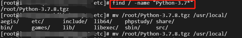 然后我们使用:mv /root/Python-3.7.8.tgz /usr/local/src 命令