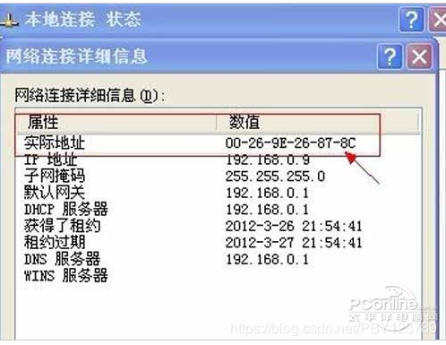如上图,在网络连接相信信息中的第一栏,实际地址后面的数值就是mac地址。 mac地址查询方法还有很多,比如不少系统开机系统显示器界面中也可以看到mac地址,每台电脑都有一个独一无二的mac地址,这主要有网卡厂商提供,有兴趣的朋友自己去查查看自己电脑的MAC地址是多少。 |