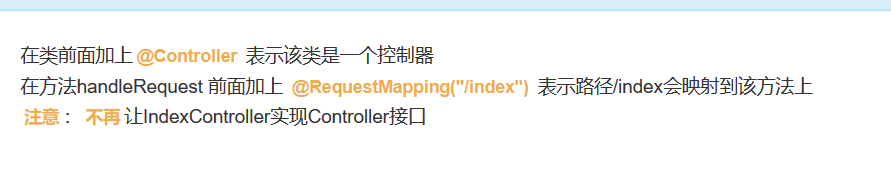 在方法前面加上@RequestMapping("/index")表示路径/index会映射到方法上
