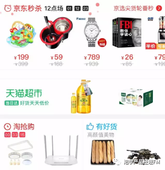 在首页上公告信息,到达率非常高。同时,产品中在进行的各种活动信息,也是吸引用户停留并购买的重要手段。随着互联网产品设逐步创新,数字化,原来千人一面的首页分类产品列表由简单罗列,变成了根据用户喜好和行为习惯进行个性化的商品推荐,产品变得更了解用户也更能触发用户购买行业发生了。