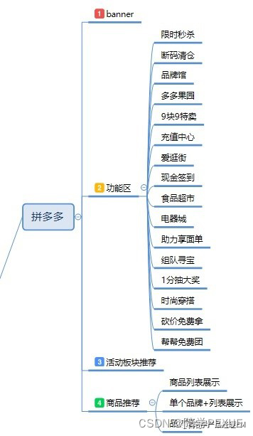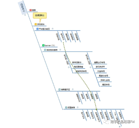 首页从根本上说,就是全站内容的目录,也是一个索引。一般的电商app都有页头、页中和页尾这3 个设计区:
