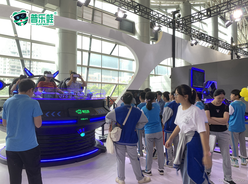 普乐蛙在湖南郴州举办的VR航天航空巡展,通过多种VR设备让学生体验航天航空知识,包括华夏UFO、华夏战机、华夏旋转星等,旨在激发科技兴趣,为航天事业培养未来人才。