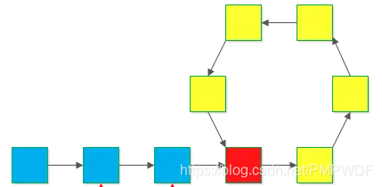 首先要清楚有环的链表长啥样,看图一,有环的链表有什么特点呢?从head开始遍历,最终会进入环中,在环里循环遍历,并不会出现null。