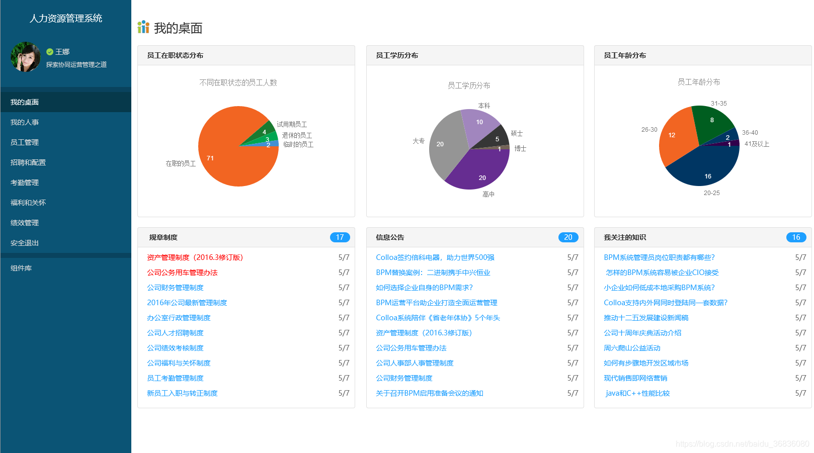 Axure人力资源管理系统-我的桌面