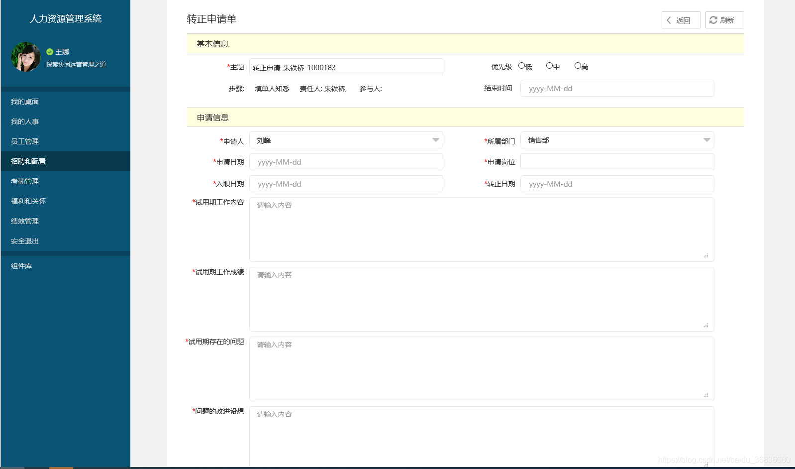 Axure人力资源管理系统-招聘配置-转正申请单