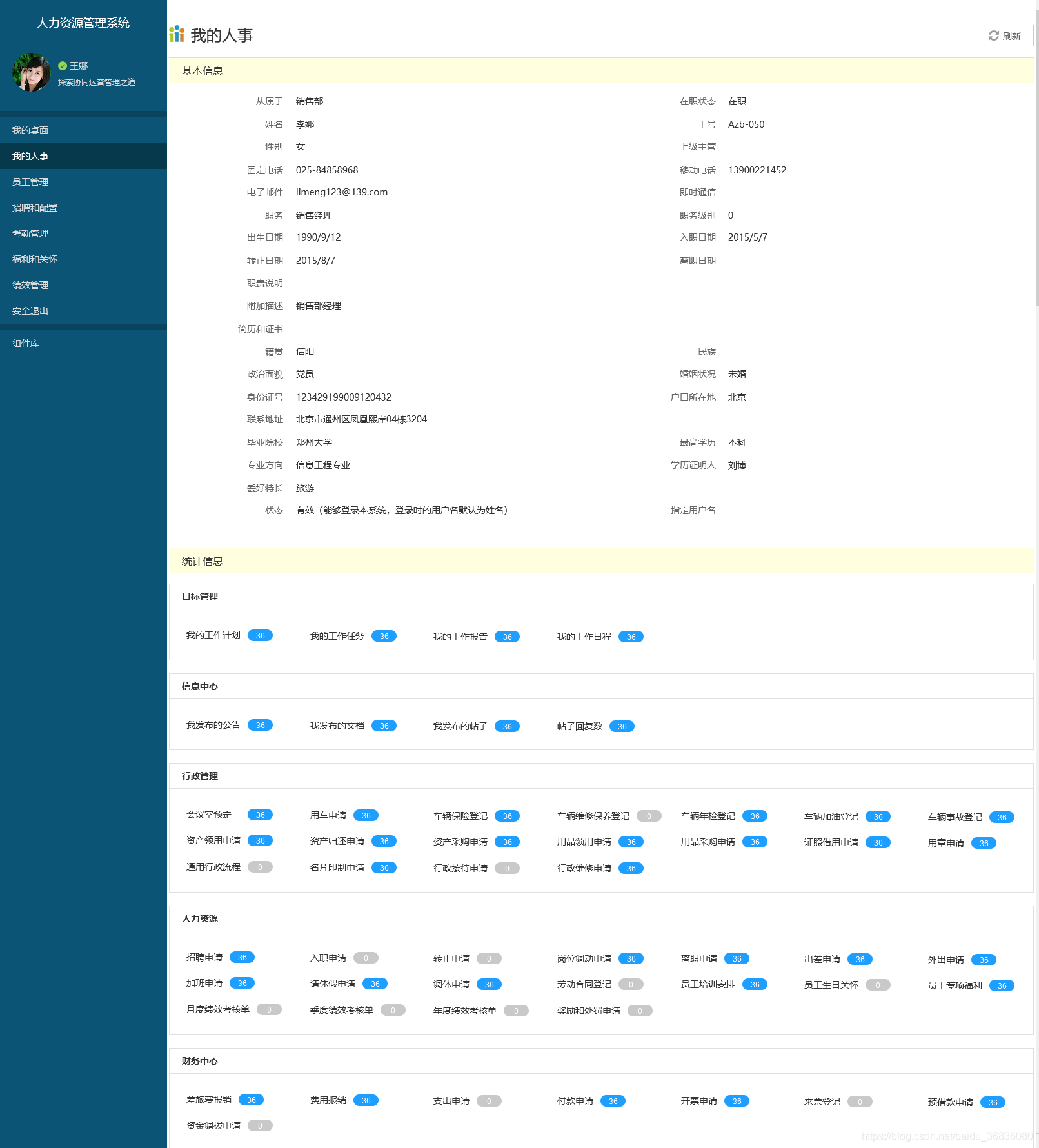 Axure人力资源管理系统-我的人事