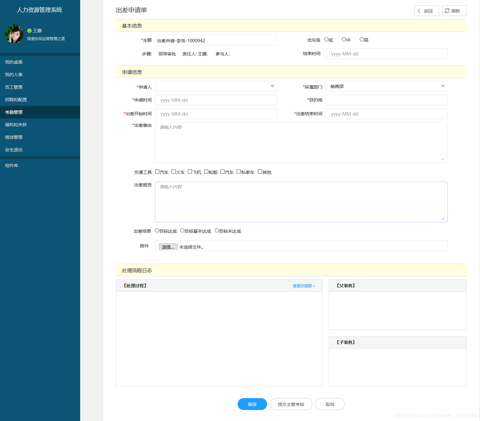 Axure人力资源管理系统-考勤管理-出差申请单
