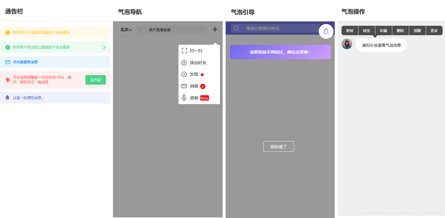 移动端高保真动态交互元件库:通告栏气泡导航、引导、操作