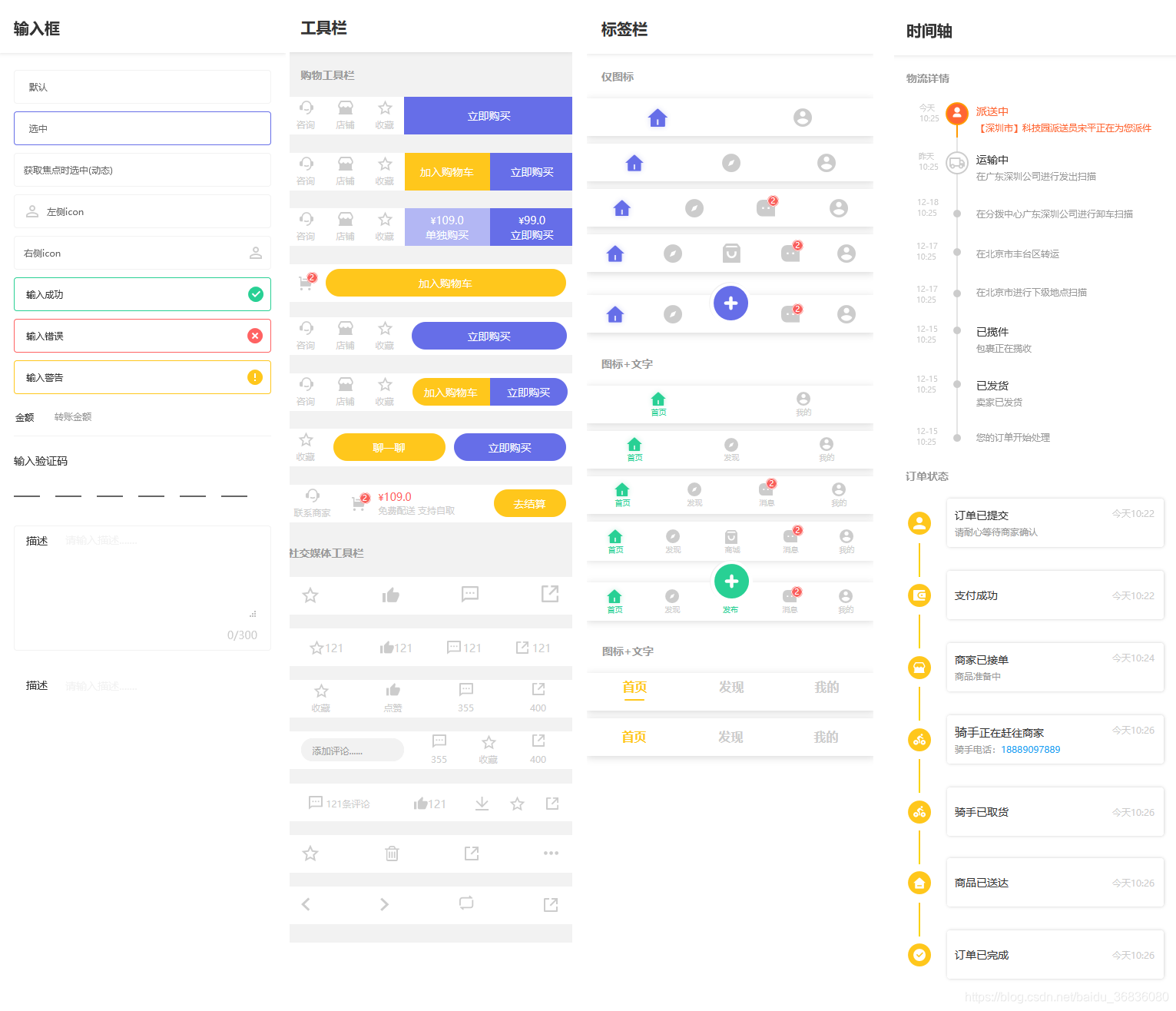 移动端高保真动态交互元件库:输入框/工具栏/标签栏/时间轴