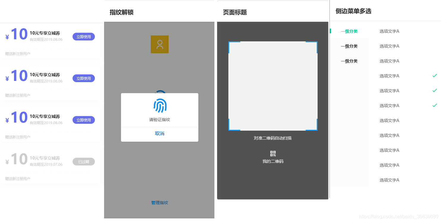 优惠券/指纹解锁/扫码/侧边菜单多选