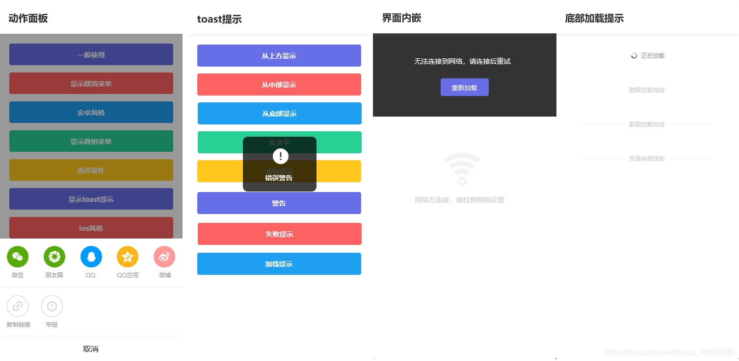 移动端高保真动态交互元件库:动作面板/toast提示/界面内嵌/底部加载提示