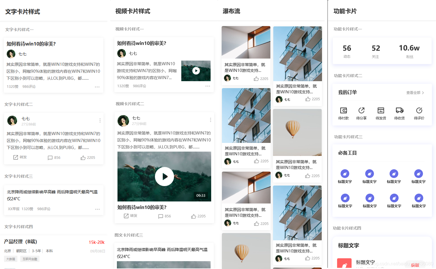 文字卡片样式/视频卡片样式/瀑布流/功能卡片