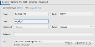 包括配置datagrip也是一样的,首先在general界面正确配置主机名和用户密码,如下所示。