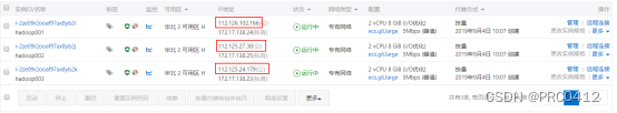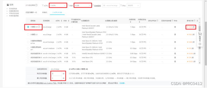 下图购买了三台服务器,但实际上我们需要购买五台。推荐购买按量计费模式最便宜,你将无条件持有实例一小时,在一小时之后若阿里云计算资源紧张,则持有的实例有可能会被阿里云释放(笔者就曾经被释放过两台)。配置好的集群一旦被释放重新配置组件将极为费力,因此采用按量计费模式对于本文请尽快食用。