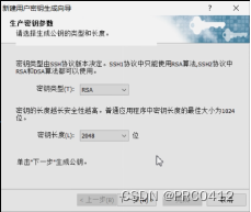 点击“新建用户密钥生成向导”,密钥类型为RSA,长度则为2048,如下所示。