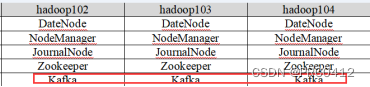 (2)依次在hadoop102、hadoop103、hadoop104节点上启动Kafka。