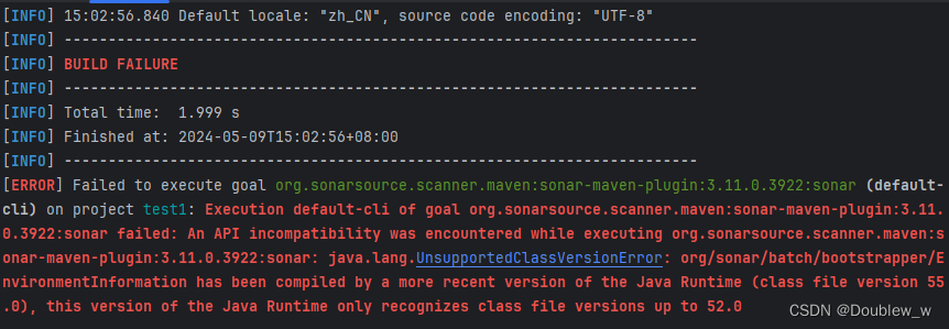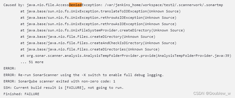 #构建会出现错误,其实很简单。因为我们之前的手动测试产生了隐藏文件.scannerwork,而sonar没有权限,我们需要手动进行删除。