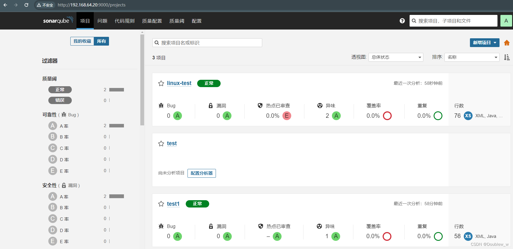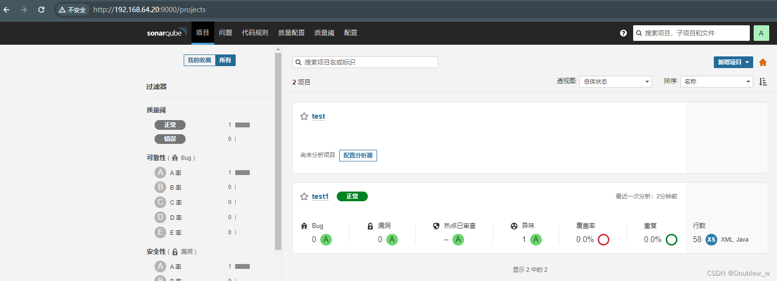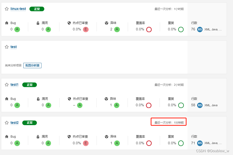 #检测成功后,返回sonar首页即可看到检测的项目。