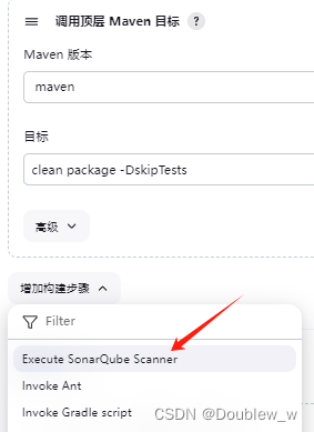 #在构建代码成功步骤后,执行sonar本地代码测试的命令