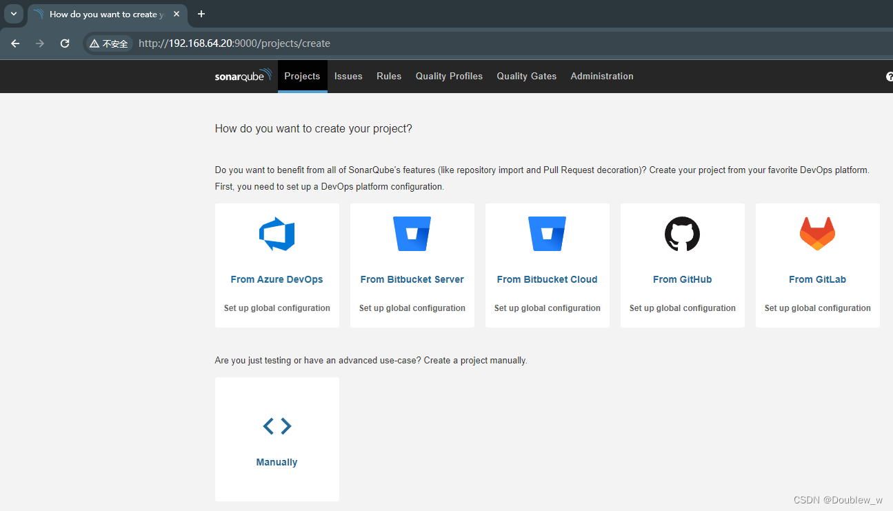 #再次回到sonarqube首页,创建一个手工项目,即可发现检测代码的质量。