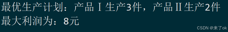 print(f"最优生产计划:产品Ⅰ生产{best_plan['Ⅰ']}件,产品Ⅱ生产{best_plan['Ⅱ']}件")