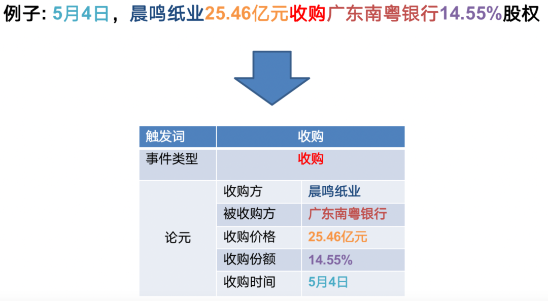 事件抽取(Event Extraction, EE)是指从自然语言文本中抽取事件并识别事件类型和事件元素的技术。事件抽取是智能风控、智能投研、舆情监控等人工智能应用的重要技术基础,受到学术界和工业界的广泛关注,目标是通过给定目标事件类型和角色类型集合及句子,识别句子中所有目标事件类型的事件,并根据论元角色集合抽取事件所对应的论元。