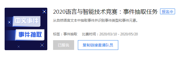 2020语言与智能技术竞赛:事件抽取任务比赛报名: