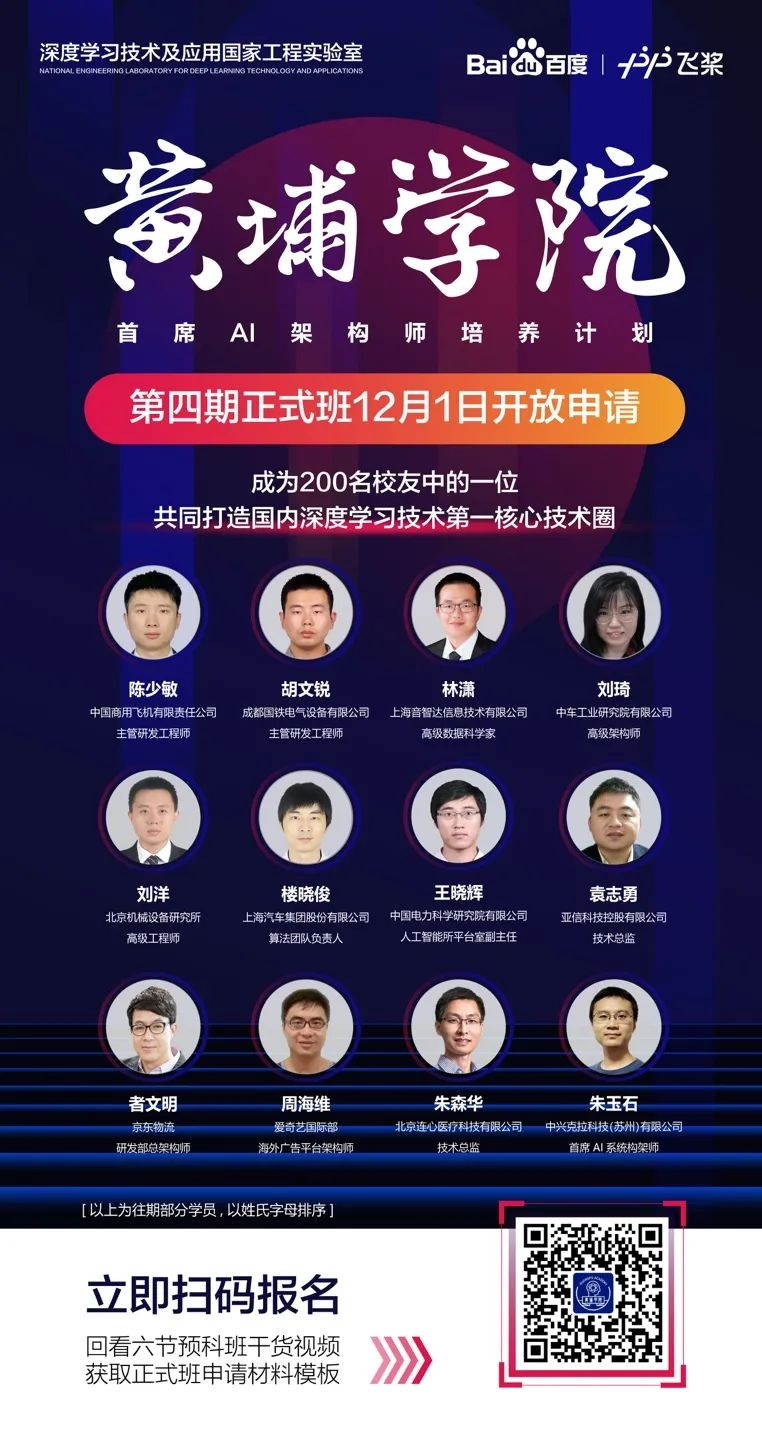 12月1日,百度黄埔学院第四期开放线下正式班申请,需要你带着“AI项目开题报告”有备而来,与百度T10+架构师一起,面对面探索产业智能化升级的新场景、新未来。