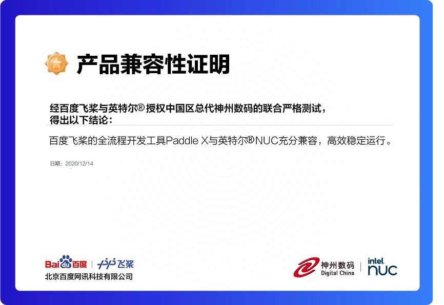 图表4 PaddleX与英特尔®️NUC兼容性证明