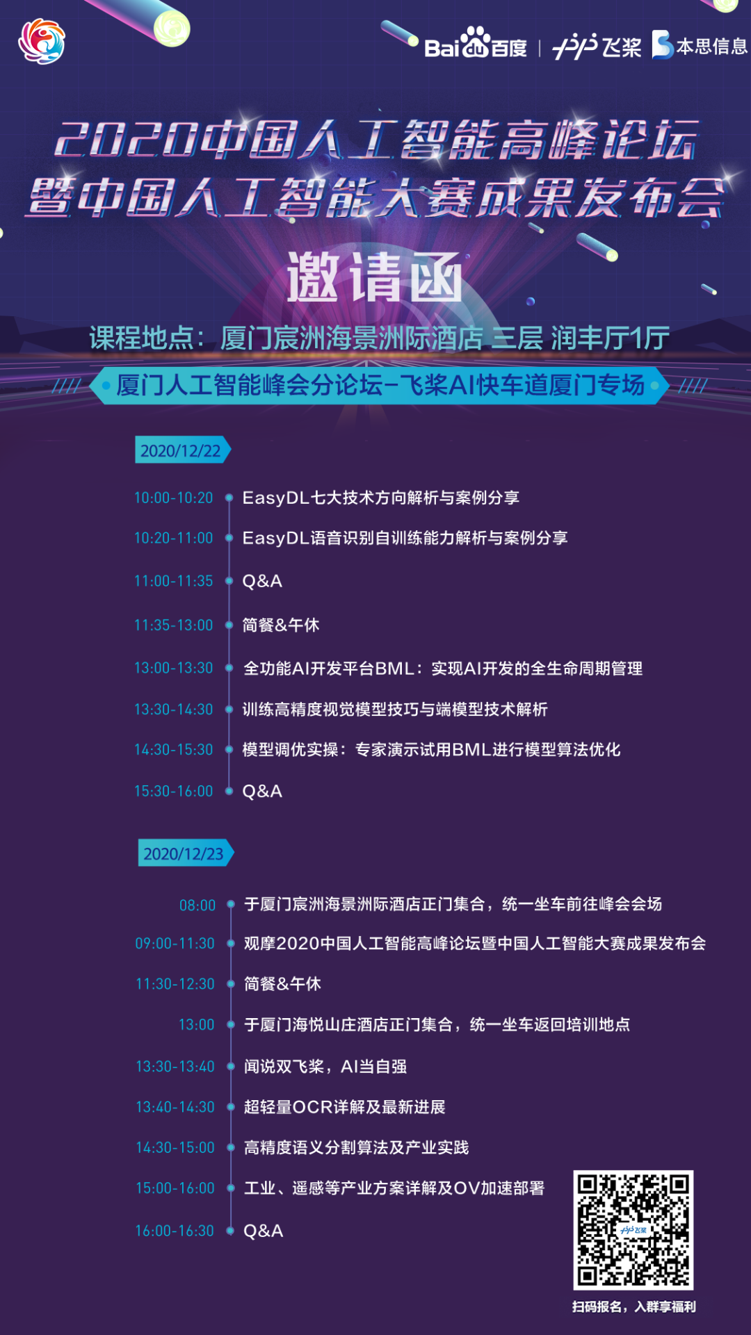 程序员工作中开发项目挑战多,需捋清模型开发流程、优化技能。12月22 - 23日,百度AI快车道将在厦门举办活动,带来超轻量OCR详解等实用AI课程,多位高工现场分享经验,助力开发者节省时间、提高效率,开发者可关注飞桨公众号了解安排并报名。