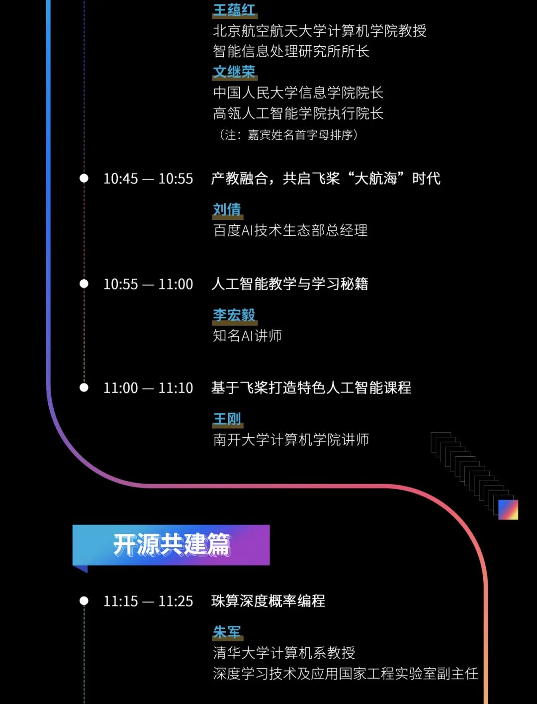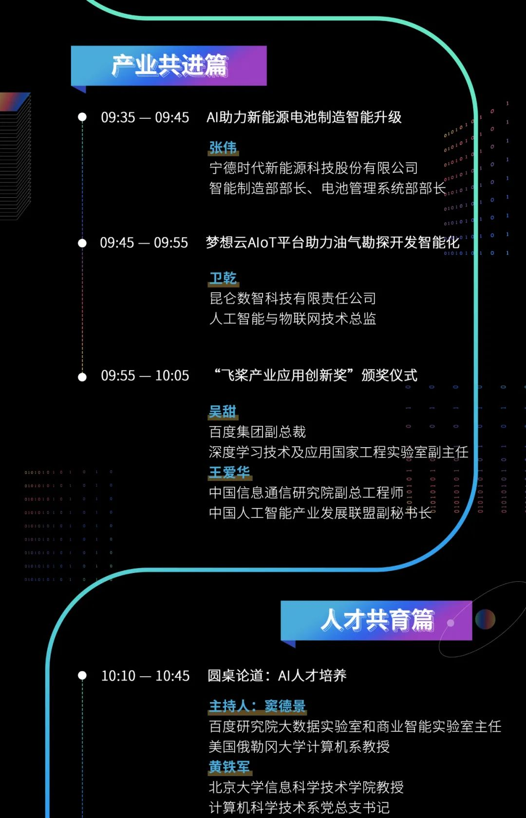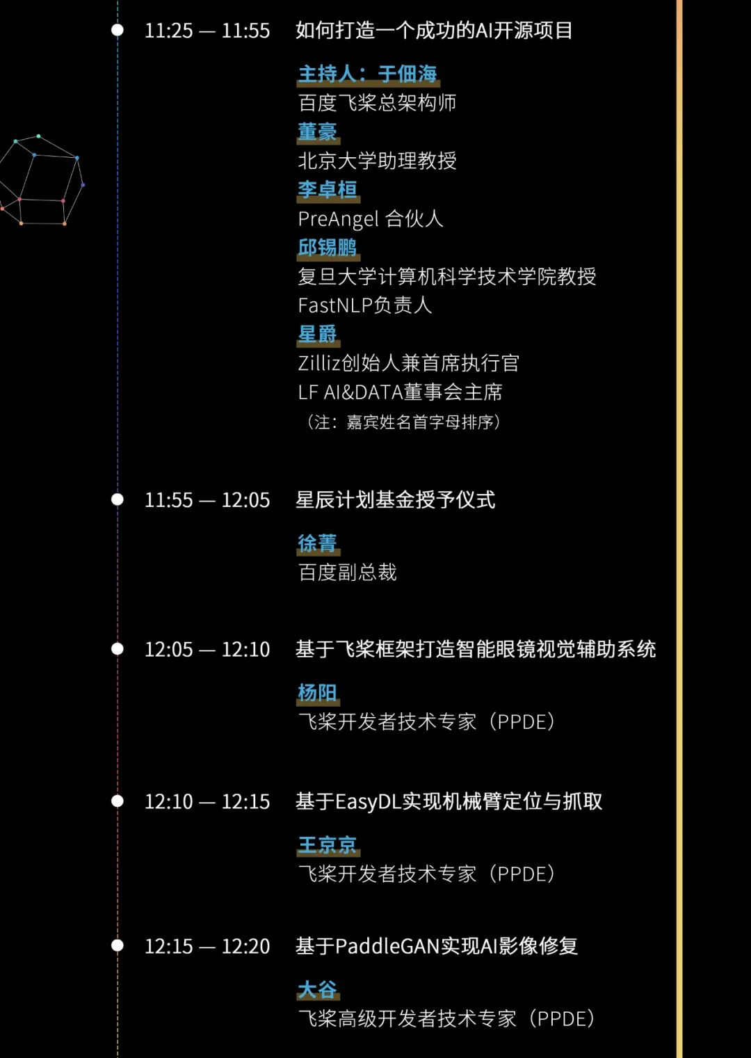 多年来,百度始终以“领头雁”身姿引领中国深度学习核心技术研发,历经多年产业实践打磨的飞桨,已广泛应用于工业、农业、服务业等各行各业。峰会上不仅有产业合作伙伴进行现场分享,还将颁发“飞桨产业应用创新奖”、“飞桨开发者技术专家”证书,并举行星辰计划基金授予仪式,进一步展现日益繁荣的飞桨生态图景。