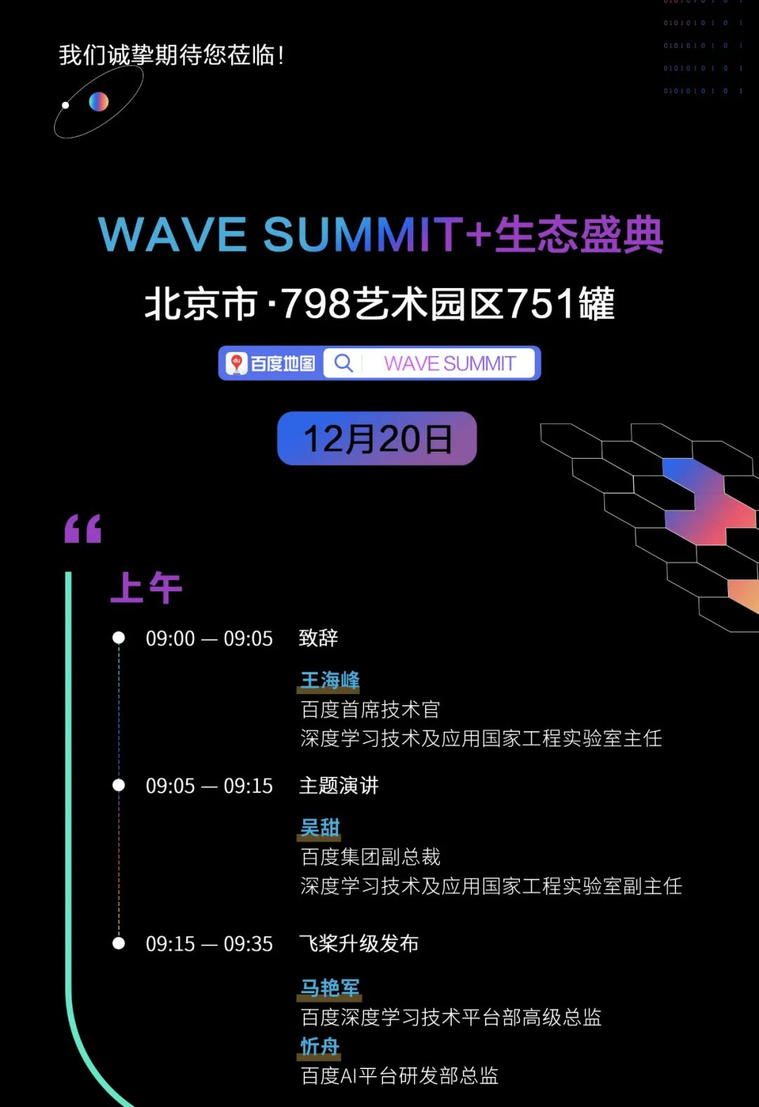 由深度学习技术及应用国家工程实验室与百度联合主办的WAVE SUMMIT+2020深度学习开发者峰会将于12月20日举行。峰会涵盖生态盛典、技术沙龙和AI之夜等环节,众多大咖将出席。还将展示飞桨生态,有公开课、项目分享等,最后以AI之夜收尾,感兴趣的开发者可报名参与。
