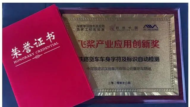 (图5:飞桨产业应用创新奖奖牌与证书)