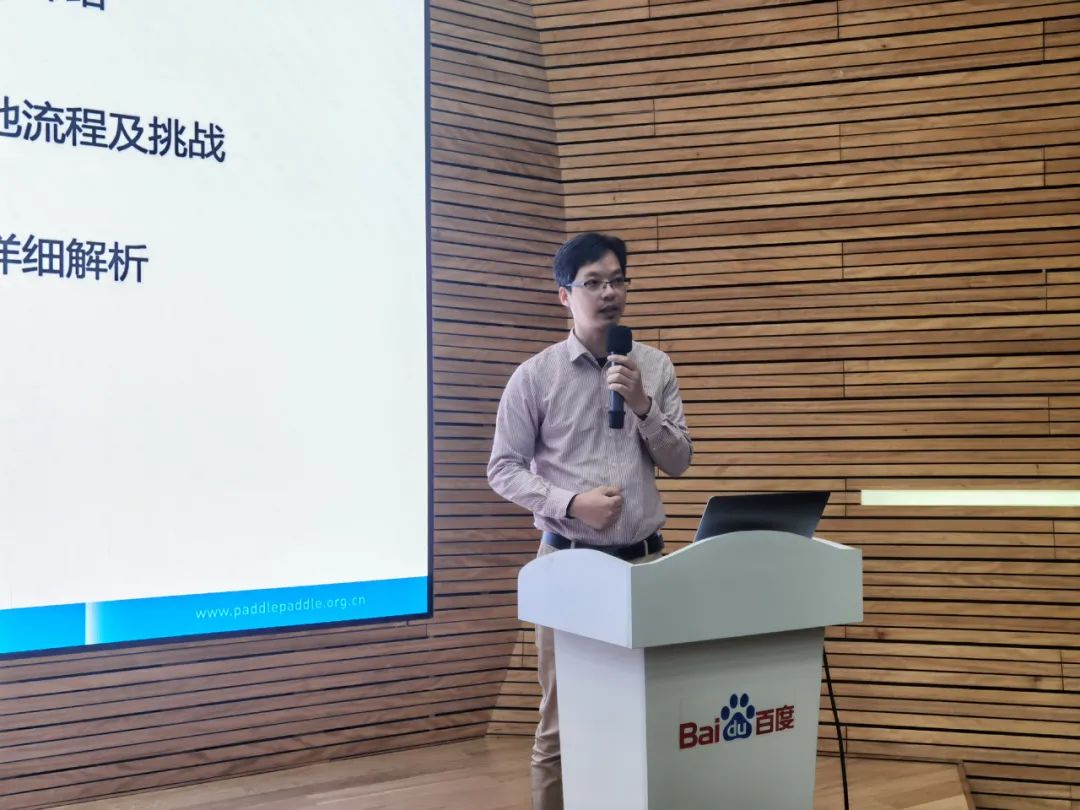 百度飞桨团队技术经理赖宝华首先分析了当下深度学习产业落地面临的痛点及挑战,然后针对这些问题,深入剖析飞桨全流程开发工具PaddleX 。它支持全流程、低代码、多策略应用开发与部署,能以最简易的方式解决各行各业深度学习应用场景落地的难题。