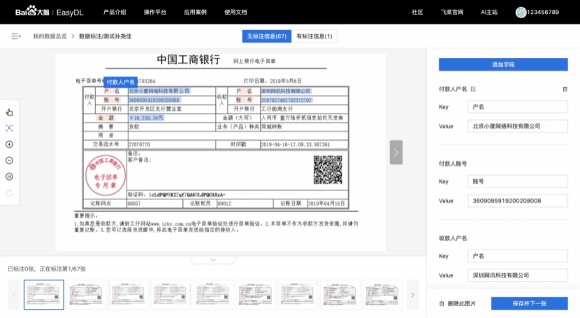 EasyDL OCR 自训练平台应运而生,帮助企业/开发者快速低成本定制专属的 OCR 识别模型,平台内置百度领先的 OCR 预训练模型,无需算法基础,即可快捷完成数据标注并批量生成虚拟数据,大幅降低标注成本,训练产出的模型平均准确率可达90%以上。