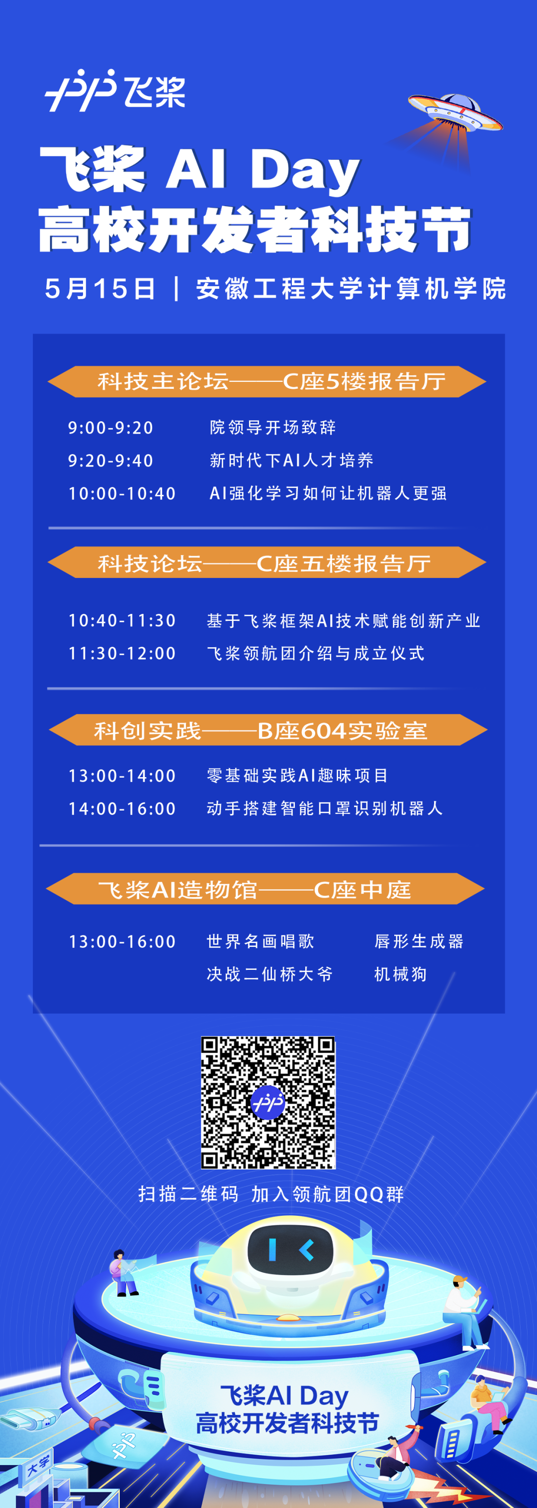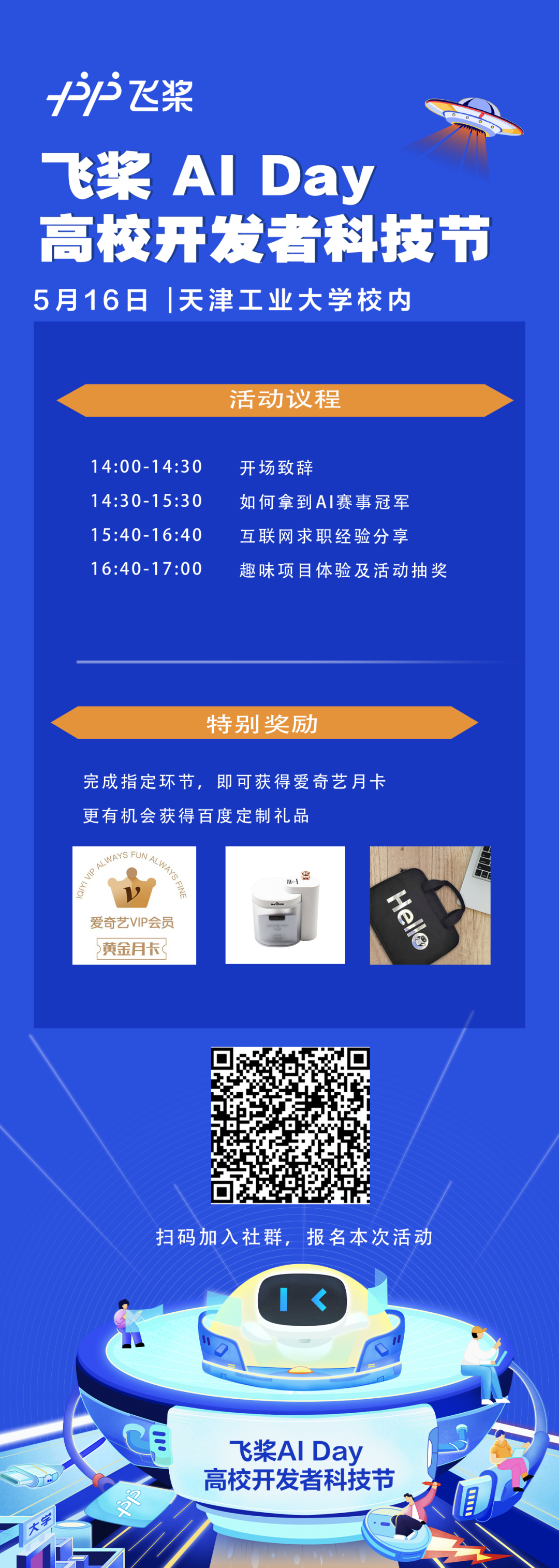 报名方式:扫描海报二维码,添加飞桨小哥哥回复“南京”,即可进入领航团群获取报名链接哦!