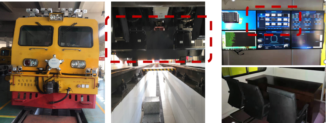 ▲ 图4:从左至右依次为巡检车、车底轨道巡检设备和后台检测系统