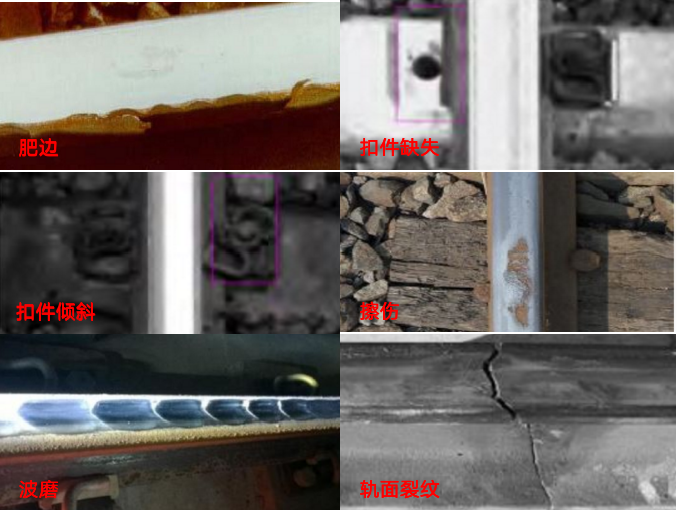 轨道安全检查都查什么呢?轨道表面主要有肥边、扣件缺失、扣件倾斜、擦伤、波磨、轨道裂纹以及剥离掉块、疲劳裂纹等伤害瑕疵类型。